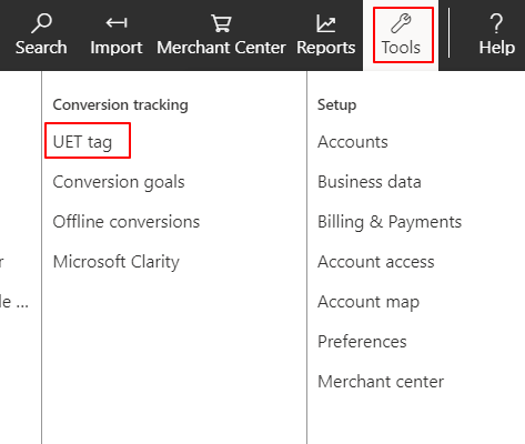 - Finally, we can set up the Microsoft UET Conversion Tracking Tag.